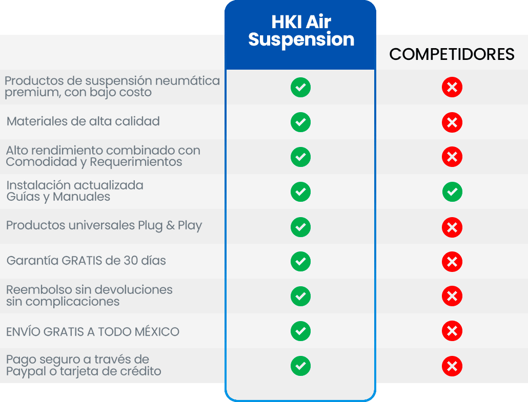 Tienes nuestra Garantía de Satisfacción al 100% de HKI Air Suspension: